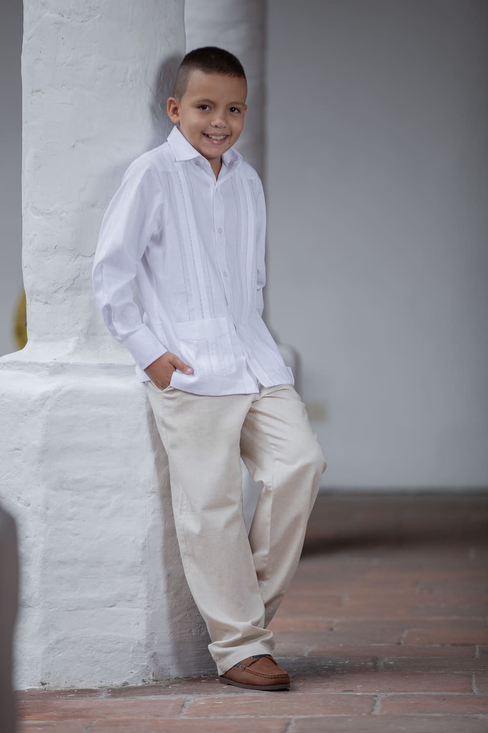Guayabera Blanca para Niño Puntadas del Tiempo